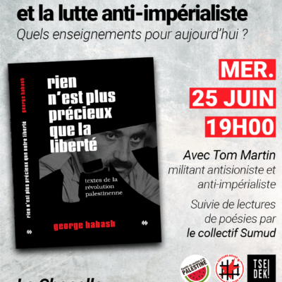 George Habash est l’un des fondateurs du Front Populaire de Libération de la Palestine (FPLP), organisation de la gauche palestinienne. Le livre « Rien n’est plus précieux que la liberté » est un recueil de textes et entretiens, la plupart inédits en français et rédigés entre 1970 et 1990, qui témoignent de la ligne politique du FPLP. […]