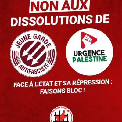 Bruno Retailleau, ministre de l’Intérieur français, a annoncé à l’Assemblée nationale l’ouverture d’une procédure de dissolution contre la Jeune Garde antifasciste. Né à Lyon en 2018 et présents dans plusieurs villes, ce mouvement a participé activement aux récentes mobilisations sociales, antifascistes et anticolonialistes. Le même jour, le porte parole d’Urgence Palestine Omar Alsoumi a déclaré […]