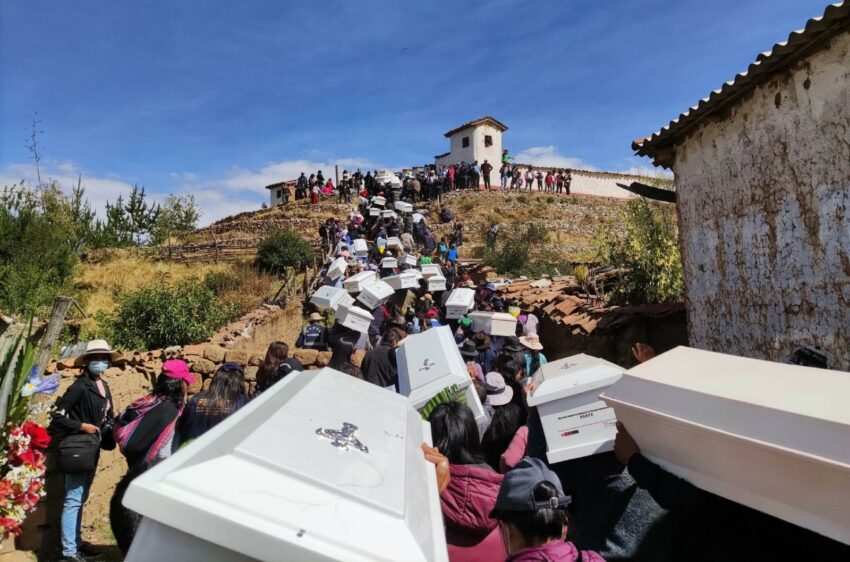 Sur la place de la ville d’Accomarca, dans la région andine d’Ayacucho (sud-est), une cérémonie a eu lieu pour les victimes du massacre perpétré par l’armée le 14 août 1985 Ce jour là, les militaires des forces anti-guérilla ont investi le village, rassemblé les habitants, torturé les hommes et violé les femmes. Les militaires ont enfermé 69 personnes dans deux cabanes au toit de chaume, et y ont mis le feu et tout en mitraillant les occupants.