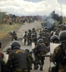 Les forces armées et la police péruvienne ont lancé une des plus grande opération de contre-guérilla de ces vingt dernières années dans la région VRAE où elle a procédé à l’évacuation forcée de centaines de villages. Dans une interview, Martin Quispe Palomino, alias le « camarade Gabriel », a dit cette semaine que la capture de techniciens de l’entreprise gazière était une ruse pour attirer les froces armées dans un piège. La guérilla a effectivement infligé une défaire humiliante aux forces armées, détruisant un hélicoptère, tuant six militaires. 1.500 militaires supplémentaires avaient été envoyés dans la zone, une région stratégique dans les environs de Cusco, où se trouvent les réserves de gaz naturel du Pérou et où part le gazoduc unique qui approvisionne en combustible la capitale du Pérou. Les services de renseignement estiment à 400 combattants les forces du PCP-SL dans la la Vallée du Río Apurímac et Ene.