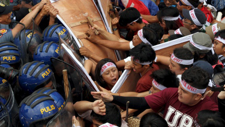 La police philippine a usé de matraques et de canons à eau contre les manifestants opposé au Sommet de la Coopération économique Asie-Pacifique, réunissant 21 pays dont les dirigeants, parmi lesquels Obama, étaient réunis à Manille. Les affrontements ont lieu lorsque les manifestants (paysans et militants anti-mondialisation) tentaient de franchir des barricades empêchant quiconque d’atteindre le lieu de la réunion. Les manifestants sont opposés à l’ordre du jour de libre-échange de l’APEC, favorable aux seules grandes entreprises. Plus de 20.000 policiers et soldats ont été déployés cette semaine pour assurer la sécurité du sommet de l’APEC.