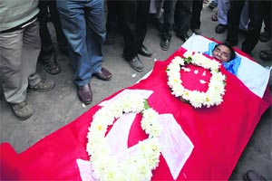 Swapan Dasgupta est mort en détention le 2 février 2010, avant son procès. Il avait été arrêté en vertu de la loi du 6 octobre 2009 (Loi sur la prévention des activités illégales) pour l’édition de People’s March (la version en bengali du magazine maoïste), même si la publication n’est pas encore interdite. Il s’est vu refuser une caution et a été placé en détention dans des conditions épouvantables. Comme il était asthmatique achronique, le traitement éprouvant de la détention à aggravé sa maladie.