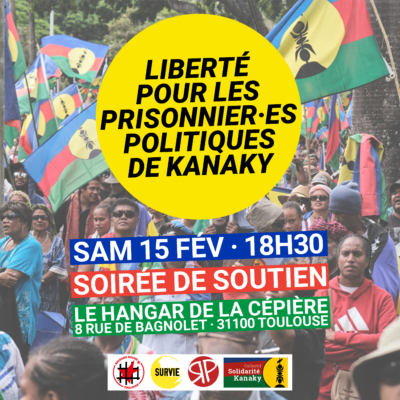 Samedi 15 février à 18H30 au Hangar de la Cépière (8 rue de Bagnolet, 31100 Toulouse), le Secours Rouge Toulouse, Survie Midi-Pyrénées, Révolution Permanente et Solidarité Kanaky co-organisent une soirée de soutien aux prisonnier·es politiques de Kanaky. Au programme : discussion sur la répression coloniale en Kanaky, exposition, atelier d’écriture aux prisonnier•es politiques. Tous les […]