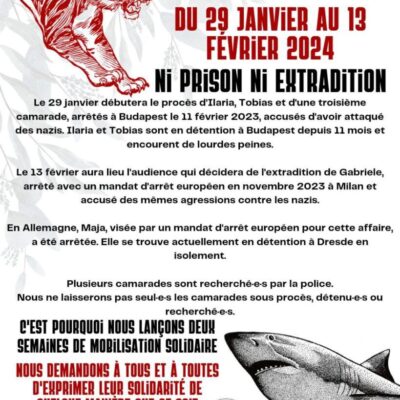 Un appel à deux semaines de solidarité avec les antifas de Budapest a été lancé (du 29 janvier au 13 février).