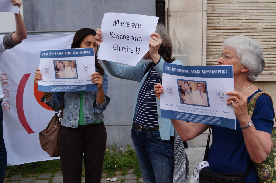 Krishna Upadhyaya et Ghimire Gundev, deux chercheurs de l’ONG Global Network for Rights and Development (GNRD), basée en Norvège, ont été arrêtés le 31 août à Doha où ils enquêtaient sur les conditions des ouvriers immigrés après les promesses de réformes faites par le Qatar.