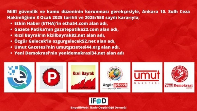 La justice turque a bloqué l’accès à 7 sites d’information ayant une ligne éditoriale socialiste. La censure frappe la Gazete Patika, ETHA, Union de lutte, Kızıl Bayrak, Özgür Gündem, le journal Umut et le journal Yeni Demokrasi. Cette décision du 8 janvier, prise par le 10e juge pénal de paix d’Ankara, évoque « la protection de la sécurité nationale et de l’ordre public ». Il y a quelques jours, sur les réseaux sociaux, les comptes X des journaux kurdes: MA, JINNEWS et Yeni Yaşam ont également été bloqués par la justice turque.