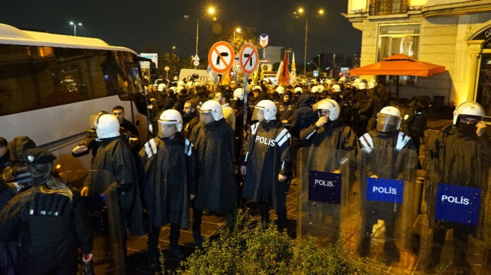Istanboul, les forces de l’ordre ont réprimé une manifestation contre les attaques djihadistes ciblant les Kurdes du Rojava ( nous lire ici et ici ). Des membres des Forces du Travail, de la Paix et de la Démocratie d’Istanbul se sont rassemblés à Şişhane pour protester contre les attaques des HTC/HTS ( Al-Nosra, branche syrienne d’Al-Qaïda devenue Tahrir al Cham ) et  l’ASL/SFA ( Armée Syrienne Libre ) soutenues par la Turquie. Les manifestants, parmi lesquels des députés du parti DEM, ont été bloqués par la police et soumis à une répression brutale après avoir protesté contre cette intervention arbitraire en scandant « Bijî berxwedana Rojava » ( Vive la résistance du Rojava ). 50 personnes ont été interpelées et placées en garde à vue.