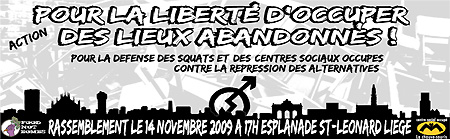 Les occupants appellent à une manifestation pour la liberté d’occuper des bâtiments abandonnés, pour la défense des squats et des centres sociaux occupés. Rendez-vous le 14 novembre à 17h sur l’esplanade St-Léonard. La manif se terminera par une fête à la chauve-souris (un sleeping sera prévu).