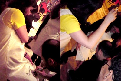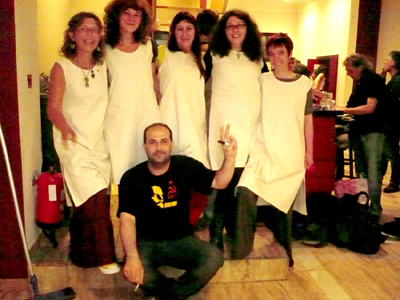 Les robes calicots, créées par des sympathisantes, pour réunir des fonds, signées par Abdallah en attendant les coups de peinture.