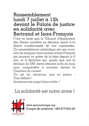 Jean-François et Bertrand dehors! La solidarité est notre arme!