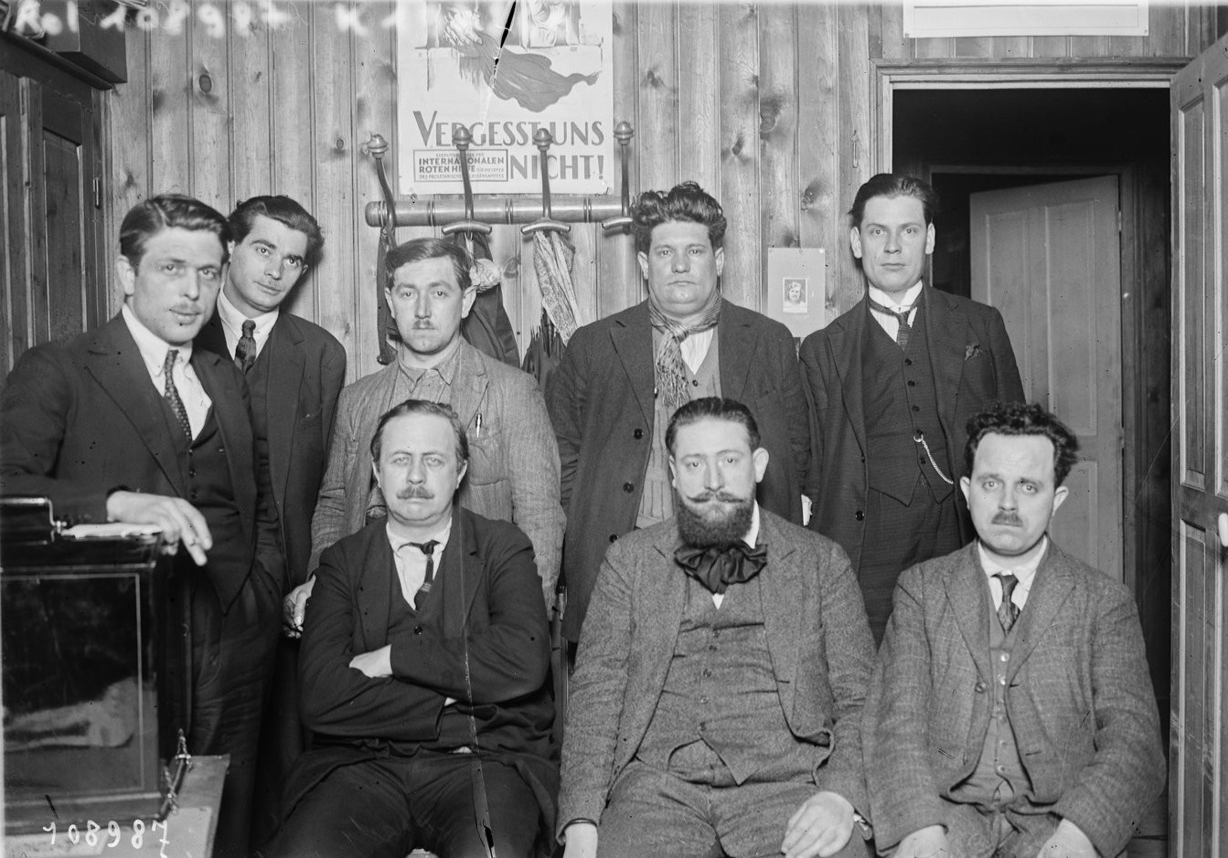 Direction de la section française du SRI en 1926: de gauche à droite, assis] Marty, Daniel Renoult, Cadeau, [et debout] Cordier, Rocher, Wallet, Geny, Michel