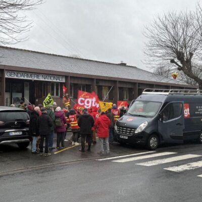 Des représentants de la CGT se sont réunis en nombre ce vendredi 24 janvier 2025 devant la gendarmerie de Bayeux (Calvados).