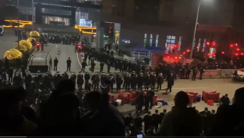 Des manifestants ouvriers ont affronté la police samedi dans la ville de Chongqing au centre du pays. Il s’agit de travailleurs d’une entreprise produisant des kits de test au COVID-19, Zybio, dans le zoning de Jianqiao du district de Dadukou, un parc industriel de la ville de Chongqing. Des vidéos montres les travailleurs jeter des boîtes contenant des tests sur les forces de l’ordre qui reculent face à leur détermination. Dans une autre séquence, on peut voir une foule devant une ligne de policiers, la nuit, alors que des haut-parleurs diffusent un avertissement leur demandant de « cesser leurs activités illégales ».  Le hashtag « Chongqing Dadukou Pharmaceutical Factory » semble avoir été censuré sur le réseau social Weibo dimanche. L’origine du conflit serait le soudain licenciement des ouvriers qui avaient été recrutés ces dernières semaines.