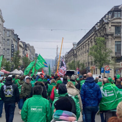 Ce lundi matin, un rassemblement des grévistes de Delhaize a eu lieu à l’appel du front commun syndical devant le SPF Emploi, Travail et Concertation sociale, près de la gare du midi.