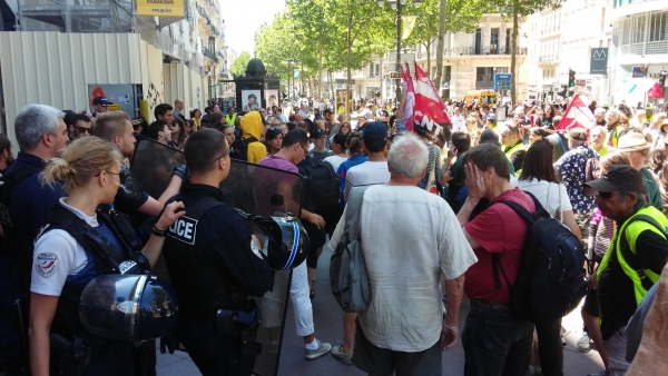 Ce samedi matin, vers 10h, un agent de sécurité de l’hôtel appelle la police alors que les femmes de chambre, en grève depuis 2 mois pour demander un 13e mois et de meilleures conditions de travail, tiennent leur piquet de grève devant l’hôtel NH Collection (du groupe Elior) à Marseille. Un premier véhicule de police arrive, le ton monte, jusqu’à une première algarade… Les policiers gazent les membres du piquet et arrêtent quatre personnes: deux femmes de chambre, et deux membres du syndicat CNT-SO, Walter et Camille. Camille – visiblement – enceinte de six mois, a été fermement menottée et s’est retrouvée au sol lors de son arrestation, malgré son état. Elle a été transférée à l’hôpital de la Conception pour un examen.