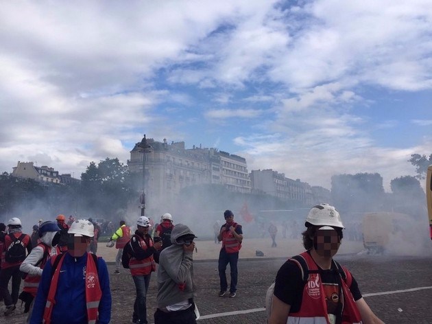 Peu après 8 h, les forces de différents services de police ont violemment chargé, usant de gaz lacrymogène et blessant plusieurs personnes. Neuf personnes sont interpellées, âgées de 15 à 45 ans. Ils sont poursuivis, selon les cas, pour refus de se disperser, entrave à la circulation, et dégradations. Les pompiers mettront ensuite une heure à éteindre les sinistres, refroidir et déblayer les carcasses de pneus