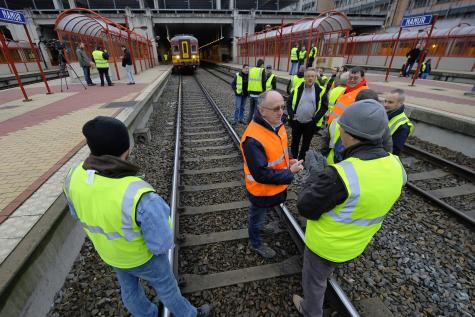 Arrivés au niveau de la Gare du Midi, les chefs syndicalistes ont prit la parole sur un écran géant sur l’Esplanade de l’Europe, avant de laisser la place à un groupe de musique. La police était organisée très différemment que lors de la manifestation du 6 novembre : des dizaines de fourgons et des centaines de policiers anti-émeute barraient les artères reliant l’Avenue Fonsny au Boulevard du Midi (Petite Centure). Un plus gros cordon barrait l’entrée du Boulevard du Midi au croisement avec l’Avenue Fonsny.