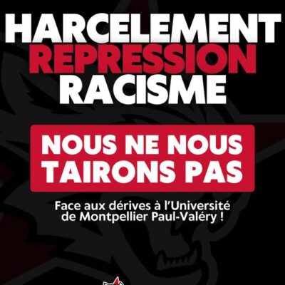 Un étudiant membre du SCUM – Syndicat de Combat Université de Montpellier est actuellement la cible d’une nouvelle procédure disciplinaire visant à le faire exclure de l’université. Il s’agit de la seconde en moins d’un an. Lors de la première procédure, il avait été exclu de l’université et interdit d’inscription dans tout l’enseignement supérieur français […]