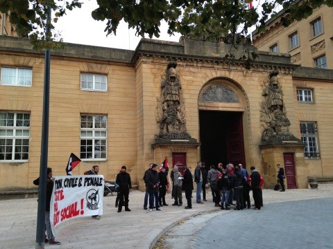 Le 23 septembre 2010 cinq manifestants sont interpellés à Roanne lors de la manifestation contre la réforme des retraites et cela pour avoir inscrit des slogans sur les murs de la sous-préfecture de Roanne. Le 13 septembre 2011, les 5 sont condamnés chacun à 2.000€ pour dégradation ou détérioration légère d’un bien et une décision d’inscription au casier judiciaire est prise contre eux. Ils décident de faire appel de ce jugement. Le parquet fait appel lui aussi car il estime la peine insuffisante. Le 15 octobre 2012, ils passent en cour d’appel au tribunal correctionnel de Lyon. Ils sont jugés coupables mais sans peine.