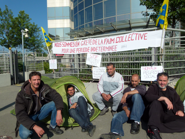 Sept syndicalistes du syndicat Sud à PSA (Peugeot Citroën) de Poissy observent une grève de la faim depuis le 18 septembre devant le pôle tertiaire du site automobile, pour dénoncer des agissements répétés de harcèlement moral. Leurs tentes campées face aux grilles du pôle tertiaire, sur le site automobile, les syndicalistes sont entrés lundi dans leur treizième jour de grève collective totale de la faim.
