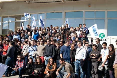 Le 21 mars dernier, les salariés d’Astek Sud-Est à Sophia-Antipolis ont manifesté pour le respect de leurs droits (photo). Sept mois plus tard, le directeur général, Franco Platano a entamé une procédure de licenciement contre deux représentants des travailleurs, ce qui a provoqué une levée de boucliers dans la région telle qu’il a finalement décidé de les poursuivre en correctionnelle. Parce que le 21 mars, les manifestants ont scandé « Platano escroc ! » en présence des médias, Platano demande 12.000 euros d’amende, et autant en dommage et intérêts.