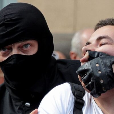 En quelques secondes, un ordinateur produit la photo et les données personnelles d’un policier cagoulé à Minsk.