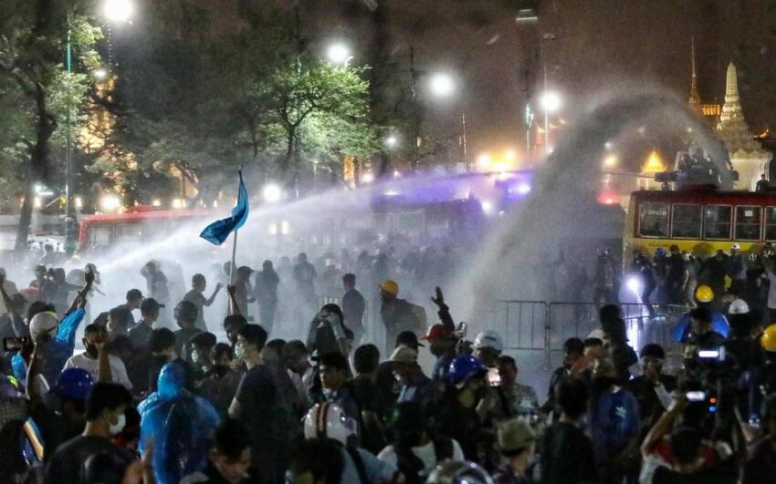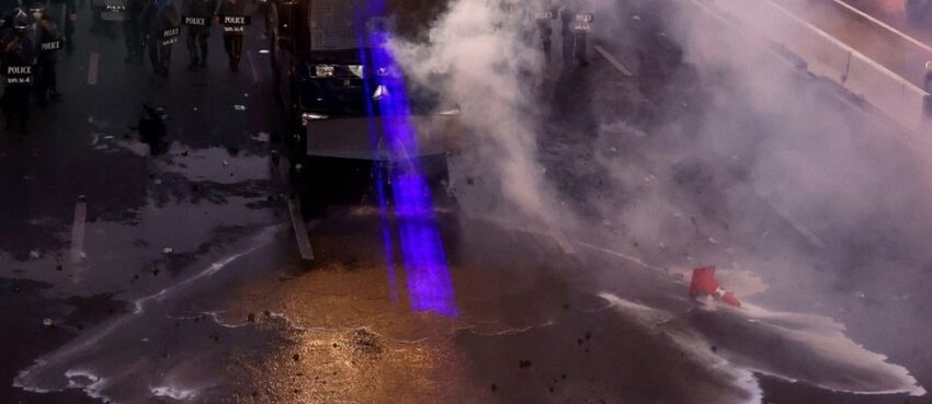 Badigeonnées de peinture rouge pour imiter le sang, Tantawan « Tawan » Tuatulanon et Orawan “Bam” Phuphong, deux jeunes militantes se sont présentées au tribunal pénal de Bangkok le 16 janvier 2023 pour demander à une juge d’annuler leur remise en liberté sous caution, en solidarité avec les autres militants incarcérés pour crime de “lèse-majesté” (photo). Elles avaient été inculpées en février 2022 pour le même motif, après avoir organisé un “sondage d’opinion” au sujet de la monarchie dans un centre commercial de Bangkok. Le 18 janvier, elles ont entamé une grève de la faim et de la soif. Elles ont été hospitalisées mais refusent tous soins médicaux. Depuis, un mouvement de solidarité se développe, des concerts, rassemblements, graffitis et messages de soutiens se sont multipliés cette semaine dans toute la Thaïlande et sur les réseaux sociaux.