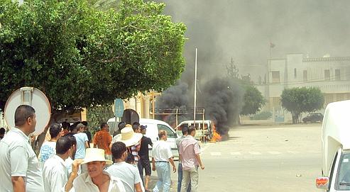Cinq postes de police et de la garde nationale ont été incendiés dans les troubles qui ont secoué Tunis et sa banlieue samedi avant l’entrée en vigueur du couvre-feu nocturne, a-t-on appris dimanche auprès du ministère de l’Intérieur. Des jeunes armés de couteaux, de chaînes, de sabres et de cocktails Molotov ont incendié des commissariats et des postes de la garde nationale dans les cités de Mnihla, d’Intilaka, d’Ibn Khaldoun, d’El-Mourouj V et dans la ville de Kasserine.Le couvre-feu n’a pas empêché des scènes de violences et de chaos dans la grande banlieue, notamment la cité d’Etthadamen. Le principal mouvement islamiste Ennahda (Renaissance) a déployé un nombre de volontaires pour protéger les gens des pillages. Un hélicoptère de l’armée équipé d’un projecteur a survolé la zone en prenant des [fond rouge]photos[/fond rouge]