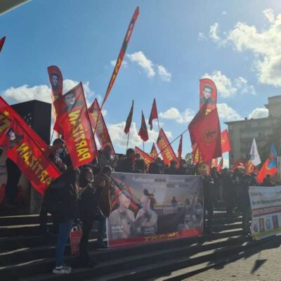 Samedi 10 octobre, plusieurs organisations de l’immigration de Turquie (AGEB, BİR-KAR, ADHK, AvEG-Kon et KCDK-E) ont organisé une manifestation devant une institution européenne à Strasbourg pour dénoncer le fait que la Turquie refuse de remettre les corps de 4 combattants du TKP/ML TIKKO tombés martyrs récemment (voir nos articles ici et ici). Derrière plusieurs banderoles […]