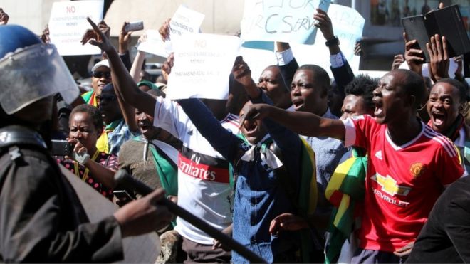 Ce débrayage général, à l’appel de plusieurs syndicats et organisations de la société civile, fait suite à plusieurs jours de manifestations dans tout le pays. Mardi passé, les fonctionnaires avaient entamé une grève pour protester contre le non-paiement de leur salaire. Seuls les membres de sécurité ont été payés. La veille, les chauffeurs de bus protestaient contre la corruption policière. Bilan: 113 arrestations et des blessés mordus par les chiens policiers. Et vendredi, 71 personnes ont été interpellées après avoir bloqué le poste-frontière de Beitbridge, limitrophe de l’Afrique du Sud, pour protester contre l’interdiction de l’importation de certains produits de première nécessité.