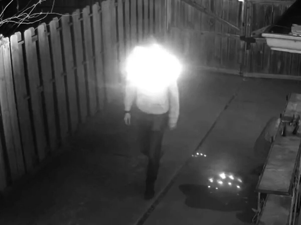 Mac Pierce, un artiste et « technologiste créatif », a mis au point un sweat qui permet à son porteur de ne pas être reconnaissable par les caméras de vidéosurveillance. Le sweat à capuche est équipé de LED infrarouges à forte puissance qui utilisent la même longueur d’onde que celle des projecteurs de caméra de vidéosurveillance pour la vision nocturne. Les caméras de sécurité à vision nocturne sont réglées pour voir la lumière infrarouge la nuit. De cette façon, elles peuvent voir dans l’obscurité. Si elles renvoient suffisamment de lumière, le capteur explose et l’exposition automatique de la caméra essaie de compenser. On perd la définition de la vue de la scène. Grâce à un interrupteur cousu dans la manche, le porteur peut ainsi faire clignoter les LED lorsqu’il approche d’une caméra. Cela a pour effet d’inonder de lumière infrarouge les caméras de surveillance situées à proximité et de les aveugler. Il suffit de positionner les LED en haut de son dos pour obscurcir son visage et ne pas être identifiable. Ce dispositif peut être fabriqué par n’importe qui et nécessite un investissement de 200 dollars environ. Mac Pierce a publié tous les logiciels et plans associés à sa fabrication en utilisant une licence Creative Commons et en mettant en libre accès le code utilisé pour le faire fonctionner. Mac Pierce a également fabriqué une casquette selon cette technologie. Lien