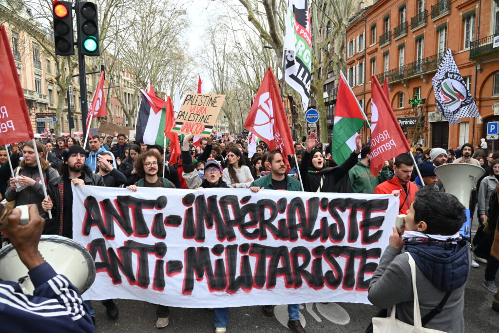 A l’appel de Révolution Permanente, du Secours Rouge et du Comité de soutien à la Palestine, 300 personnes ont formé un cortège anti-militariste et anti-impérialiste lors de la manifestation contre le racisme et l’extrême droite ce samedi 22 mars à Toulouse. Scandant des slogans contre l’impérialisme français, le racisme d’Etat mais aussi en soutien à la libération de la Palestine et de Georges Abdallah, les manifestants ont souligné l’importance de se mobiliser face à la course à l’armement en Europe autour du mot d’ordre « Guerre à la guerre » !