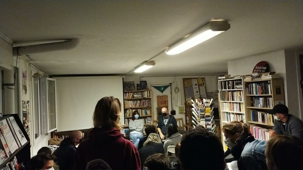 Lundi 25 octobre, la soirée sur l’histoire des CCC (Cellules Communistes Combattantes) a réuni une trentaine de participant·e·s au Chat Noir toulousain. Après la projection d’un documentaire, Bertrand Sassoye est intervenu sur le parcours des CCC dont il fut l’un des fondateurs. La présentation a été suivie d’un débat qui a abordé de multiples sujets : la situation d’alors en Belgique, mais aussi la situation actuelle en Europe, la nécessité de la lutte armée, des discussions et réflexions sur les différentes organisations révolutionnaires armées en Europe à cette époque (RAF, Brigades Rouges, Action Directe…), la question de la répression et de la solidarité, de la clandestinité… Et évidemment la question des tâches de la gauche révolutionnaire aujourd’hui. C’était une discussion riche qui s’est poursuivie de façon informelle bien après la clôture du débat. Le Secours Rouge Toulouse remercie le Chat Noir pour son accueil, Bertrand Sassoye pour son intervention et tou·te·s les participant·e·s qui ont permis de faire de cette soirée un moment d’échange politique enthousiasmant.