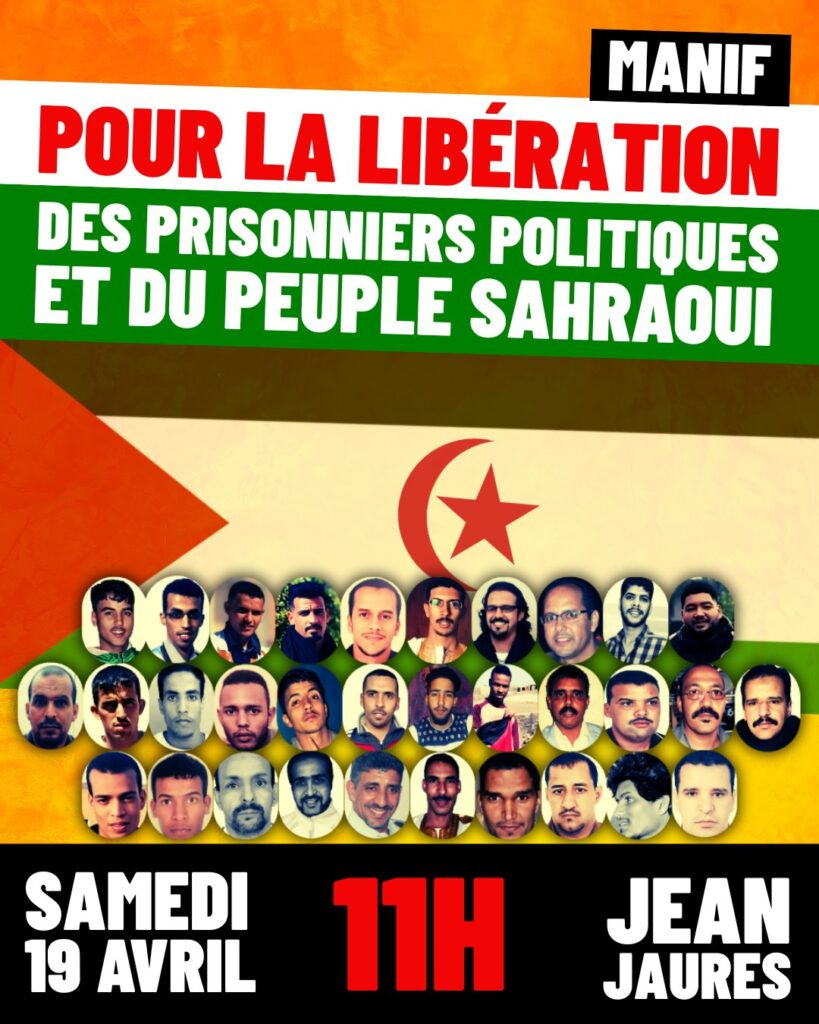 A l’appel de la communauté sahraouie, du Secours Rouge et des dizaines d’autres organisations, une manifestation de soutien aux prisonniers politiques sahraouis est organisée ce samedi 19 avril dès 11h au départ de Jean Jaurès à Toulouse (lire l’appel unitaire). Celle-ci est organisée dans le cadre de la Marche pour la Liberté qui s’est élancée d’Ivry le 30 mars et a pour objectif d’arriver à la prison marocaine de Kenitra en juin (voir notre article).