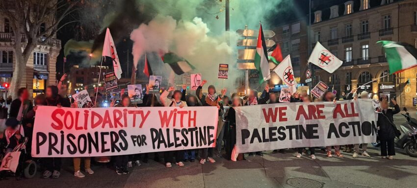 Organisé par le Comité de soutien à la Palestine le vendredi 17 janvier à Toulouse, près d’une centaine de personnes ont participé à un rassemblement pour soutenir les militants de Palestine Action emprisonnés au Royaume-Uni mais aussi pour la libération des prisonniers palestiniens, dont Anan Yaeesh et Ahmad Sa’adat. Lors de sa prise de parole, le Secours Rouge Toulouse a souligné la « victoire partielle » obtenue par les grévistes de la faim de Palestine Action (voir notre article). Par ailleurs, il a rappelé que « leur courageuse grève de la faim a été un appel lancé au monde entier : face à la répression, la meilleure des réponses est la lutte collective dans et hors les prisons ! Évidemment, leur situation n’est pas un cas isolé. De nombreux militants de la cause palestinienne sont aujourd’hui détenues dans les geôles des puissances imperialistes comme Casey Goonan condamné à 20 ans de prison aux Etats Unis, les 5 pro-palestiniens d’Ulm et la révolutionnaire anti-impérialiste Daniela Klette en Allemagne ou encore le palestinien Anan Yaeesh qui vient d’être condamné à 5 ans et demi de prison en Italie. » Coïncidant avec le 24ᵉ anniversaire de l’arrestation d’Ahmad Sa’adat en 2002, le rassemblement a également déployé plusieurs affiches exigeant la libération du secrétaire général du FPLP emprisonné.