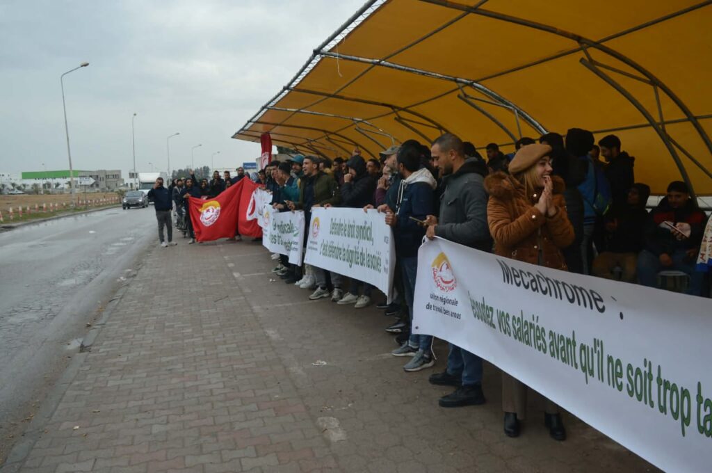 À Fouchana, les salariés de l’usine aéronautique Mecachrome Tunisie dénoncent une répression brutale après le licenciement début janvier de douze travailleurs, dont sept syndiqués, suite à une mobilisation en décembre revendiquant hausses de salaires et primes, et après la création d’une section du syndicat Union Générale Tunisienne du Travail (UGTT) que la direction refuse de reconnaître. Celle-ci a justifié ces licenciements en qualifiant la grève d’« illégale », accusation contestée par les salariés. En réponse, l’UGTT a déposé un nouveau préavis et appelle à trois jours de grève du 19 au 21 janvier 2026 pour exiger le respect du droit syndical, l’arrêt des licenciements et de meilleures conditions de travail, tandis que certains salariés font l’objet de convocations par la police criminelle. De son côté, la CGT Mecachrome Toulouse a affirmé son soutien aux travailleurs tunisiens et appelle à faire front face à la répression et à renforcer la solidarité internationale.