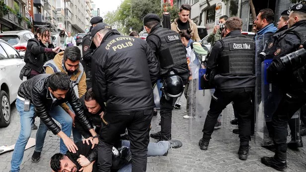 En Turquie, à Istanbul, des incidents ont éclaté aux abords de la place Taksim, où 34 personnes avaient été tuées lors du 1er-Mai 1977, et où les manifestants tentent chaque année d’affluer, malgré l’interdiction des autorité. Au total 164 personnes ont été appréhendées «pour rassemblement interdit et refus de se disperser», pour avoir voulu rejoindre la célèbre place, épicentre des grandes protestations anti-gouvernementales de 2013, fermée au trafic et aux défilés. Plusieurs milliers de personnes ont simultanément rejoint dans le calme la manifestation officielle des syndicats et organisations professionnelles, autorisée loin de Taksim, sur la rive asiatique de la mégapole.