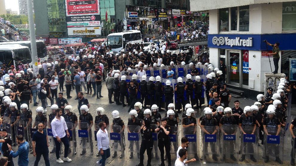 Les mères et les des proches des prisonniers politiques voulaient faire, hier samedi, une déclaration de presse devant le bâtiment du district de Şirinevler du HDP pour attirer l’attention sur les violations des droits dans les prisons et la situation des prisonniers malades. La police, qui a déclaré la place et ses environs interdits d’accès, bloqué la foule par plusieurs nasses devant le bâtiment du HDP. Invoquant la décision du bureau du gouverneur du district pour justifier l’interdiction de l’action, la police a empêché les familles des prisonniers et les personnes qui les accompagnaient d’ouvrir leur banderole et de faire leur déclaration. Les membres de la presse ont été expulsés par la force. Les mères ont été bousculées, menottées et arrêtées.
