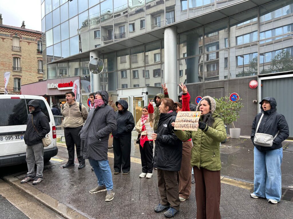 De nombreux prisonniers révolutionnaires poursuivent leurs grèves de la faim pour exiger la fermeture des prisons S, R et Y dites « de type puits » et leur transfert vers d’autres prisons (voir notre article). Serkan Onur Yılmaz, détenu à la prison de type F de Bolu, a été enlevé et hospitalisé de force par l’administration pénitentiaire alors qu’il était au 318e jour de son jeûne jusqu’à la mort contre les prisons de « de type puits » et pour le transfert de huit prisonniers de la prison de haute sécurité d’Antalya vers une autre prison. Serkan Onur Yilmaz était pleinement conscient lors de son transport à l’hôpital et il s’oppose catégoriquement à toute intervention dans sa grève de la faim qui constituerait une violation des lois interdisant l’alimentation forcée. Suite à la diffusion de cette nouvelle, des manifestations spontanées devant des ambassades turques ont eu lieu en Europe, notamment à Paris (voir photo).
