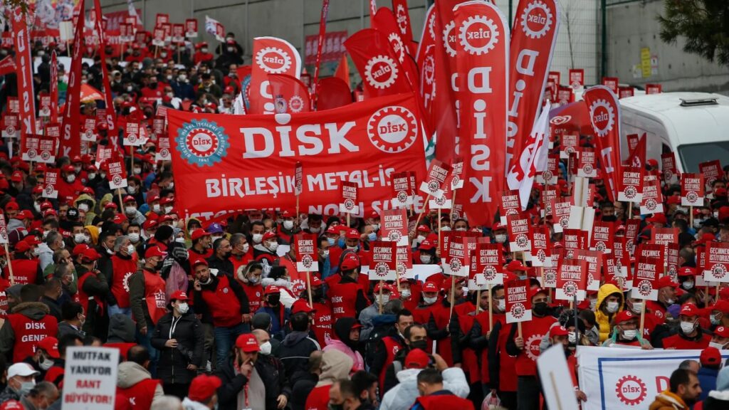 Selon la Confédération syndicale internationale, la Turquie est en queue de classement des pays les plus respectueux des droits des travailleurs, pour se retrouver dans les dix dernières places, au même titre que le Bangladesh, le Myanmar ou l’Egypte. Les licenciements de salariés ayant tenté de s’organiser en syndicat sont devenu monnaie courante dans le secteur privé, où le taux de syndicalisation reste très faible (7%). Et ce alors qu’une très forte inflation a entraîné ces dernières années une chute du pouvoir d’achat des travailleurs turcs.