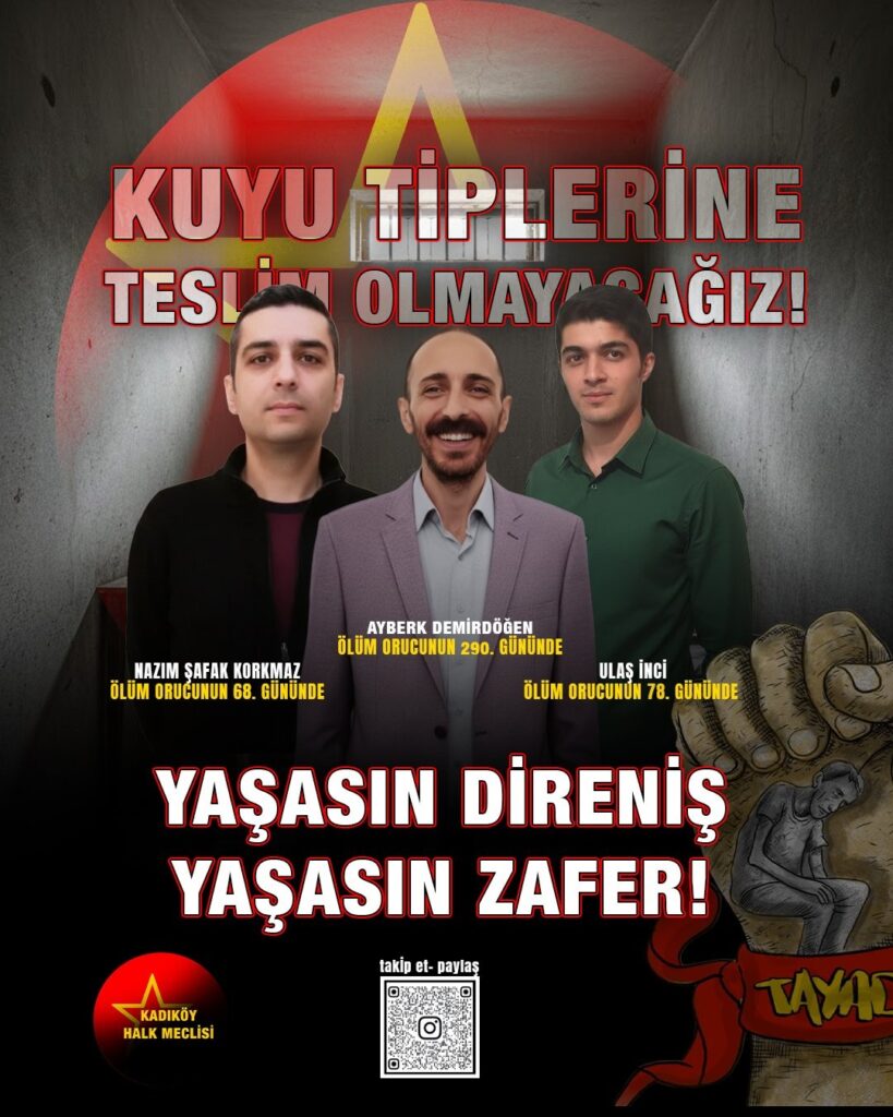 Les prisonniers révolutionnaires Ayberk Demirdögen, Ulaş İnci et Nazım Şafak Korkmaz ont mis fin à leurs grèves de la faim après avoir obtenu gain de cause, une victoire attribuée à la mobilisation conjointe des détenus, de leurs familles et de leurs partisans. Ils étaient respectivement mobilisés depuis 290, 78 et 68 jours. Toutefois, la lutte se poursuit contre les prisons de type puits, plusieurs prisonniers restant en grève de la faim illimitée dans des prisons de haute sécurité à Antalya, Çorlu Karatepe et Kandıra, tandis que les familles maintiennent des actions de soutien à Ankara et İzmir. En effet, Tahsin Sağaltıcı et Gürkan Türkoğlu sont en grève de la faim depuis le 30 juillet 2025, tandis qu’Ali Dilmen l’est depuis le 11 août, Hüseyin Özen depuis le 18 août et Doğan Karataş depuis le 15 octobre 2025.
