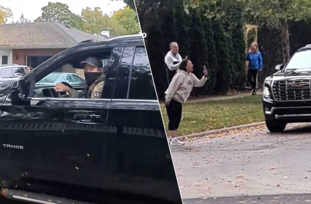 Le village de Mount Prospect, à Chicago se mobilise pour mener la vie dure aux agents de l’ICE. Celle-ci prétendait rechercher un “détenu en fuite”, c’est l’une des nombreuses raisons invoquées par les agents pour justifier leur présence. Ils n’étaient manifestement pas les bienvenus, et les habitants se sont mobilisés pour affronter les agents masqués: “Quittez notre ville! On ne vous veut pas ici!” criaient-ils, ils filmaient les agents, klaxonnaient et leur ont lancé divers projectiles. Ceux-ci ont finalement quitté l’endroit, on ignore s’ils ont arrêté quelqu’un.