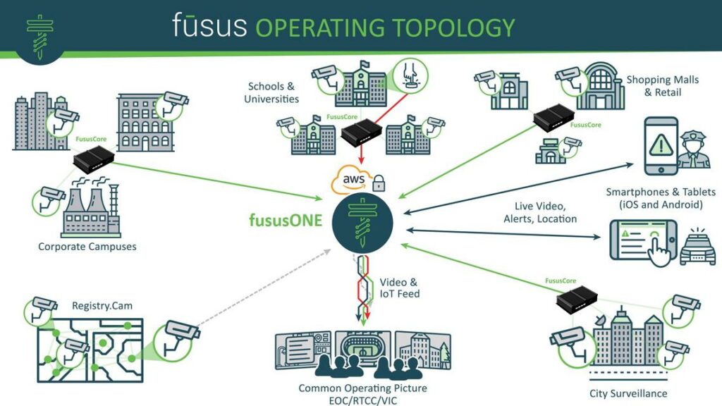 Cette plate-forme qui, avec l’autorisation des propriétaires de caméras privées, relie toutes les caméras ensemble dans un réseau, peut être surveillé par les forces de l’ordre. La police peut également examiner les enregistrements vidéo et audio de ces caméras. Les caméras permettent également des recherches d’intelligence artificielle qui peuvent rechercher certains types de véhicules et de personnes portant une certaine couleur. La société propose plusieurs façons d’utiliser son produit et propose plusieurs modules complémentaires, notamment un outil de police prédictive, des recherches reposant sur l’intelligence artificielle et la détection des coups de feu. À l’échelle nationale, Fusus est lié à au moins 33 000 caméras dans plus de 60 juridictions. Sans Fusus, la police pourrait avoir besoin d’un mandat pour ces images.