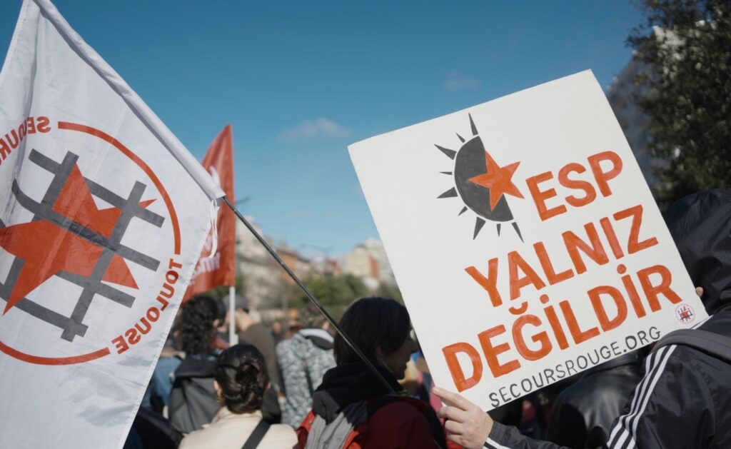 À Toulouse, samedi 21 février, la communauté kurde et des militants internationalistes se sont rassemblés à la sortie du métro Jean Jaurès pour soutenir la résistance au Rojava et au Rojhelat. Des drapeaux du Kurdistan, des YPG/YPJ et d’autres symboles de défense du Rojava ont été déployés, accompagnés d’une banderole proclamant « Solidarité révolutionnaire avec le Rojava » et des messages de soutien au Parti socialiste des opprimé·es (ESP) de Turquie face à la vague d’emprisonnement de plus de 80 de ses membres. Par ailleurs, le Secours Rouge Toulouse a souligné sa solidarité suite à l’arrestation et l’expulsion d’une délégation internationale venue observer les conditions de détention inhumaines pratiquées dans les prisons de dites de « type puits » (voir notre article).
